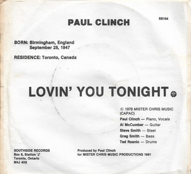 Clinch, Paul - Lovin' You Tonight b/w I've Been Wonderin'