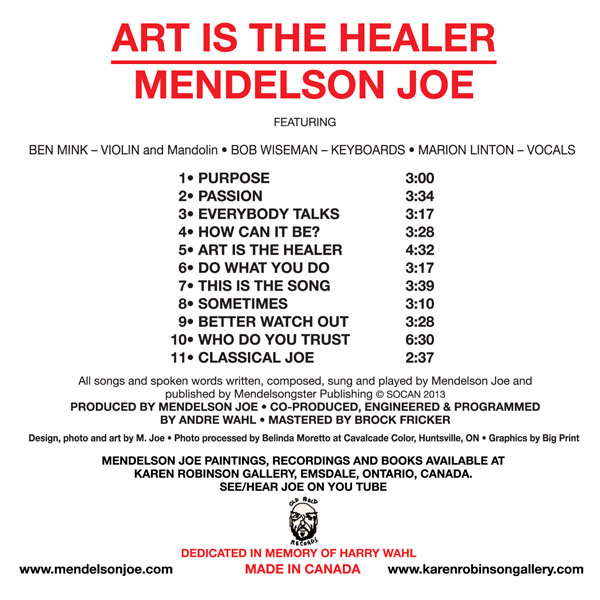 ART IS THE HEALER is Joeâs umpteenth album and features stalwart NOTABLES Ben Mink and Bob Wiseman. Joeâs an outsider in all genres (heâs an accomplished painter/penner). The âARTâ CD includes four brand new tunes and an assortment of oldies dating back to over five decades of songwriting. Silly, serious, and Bluesy.