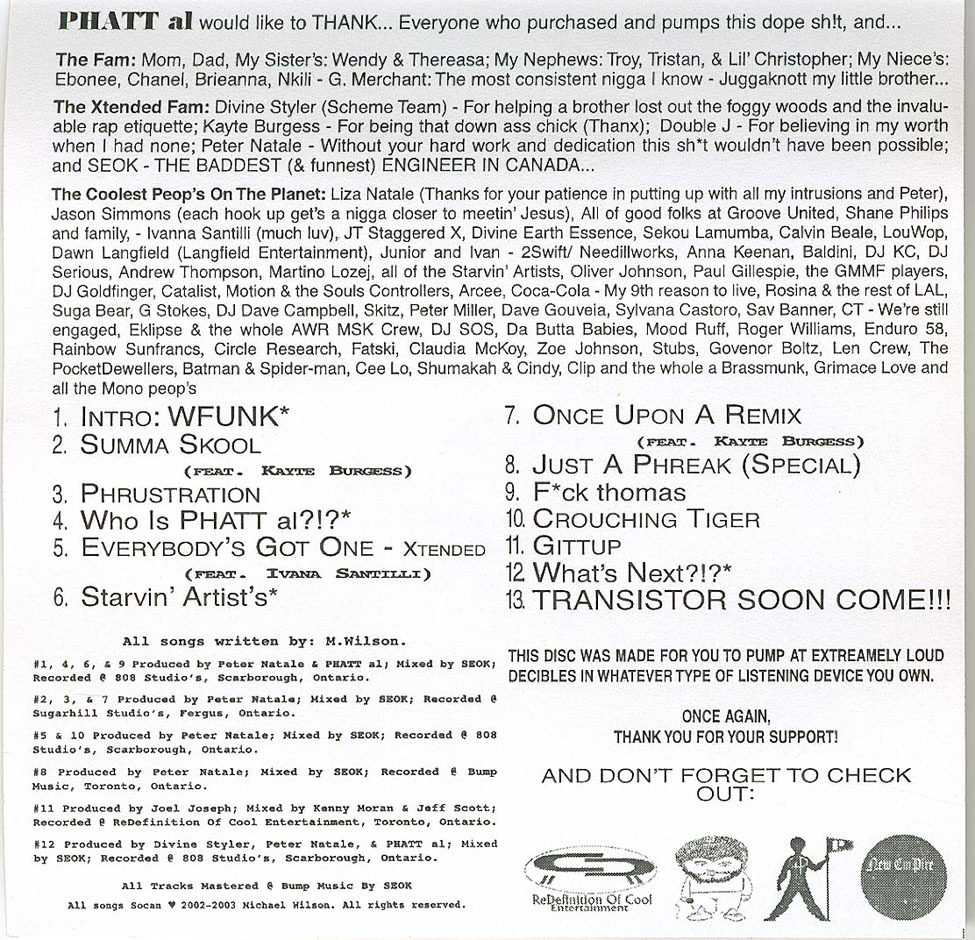Local hiphop underground stalwart PHATT al's consistency is impressive. The MC's broken-down flow and inward-looking rhymes aren't likely to break him wide open to the mainstream market, but the guy's been a constant on Toronto's subterranean scene for years. Summa Skool is more high-drama hiphop, with PHATT al replacing the live-band-inspired energy of his shows with more straightforward studio beats. The soul-inspired collaborations with Kayte Burgess and Ivana Santilli work best, straddling the chasm between underground hiphop and pure pop.