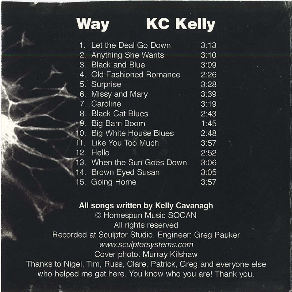 KC Kelly’s first CD showcases his voice, steel guitar playing, and songwriting abilities in twelve original songs recorded solo in the studio. A “back porch” blues/folk/roots album, Kelly holds your attention to the very last note with tales of burning hotels, floods in the delta, girls, and just plain going places. Described as a “consummate songwriter as well as instrumentalist”, his slide playing takes a back seat to the vocal melodies but also shines in songs like Anything She Wants and Caroline. One Fine Morning takes you deep into the blues, Wish No Mo’ has a more light-hearted approach, Going Home and When the Sun Goes Down a more intimate one. Strong songs from start to finish, this album gets better with every listen.
