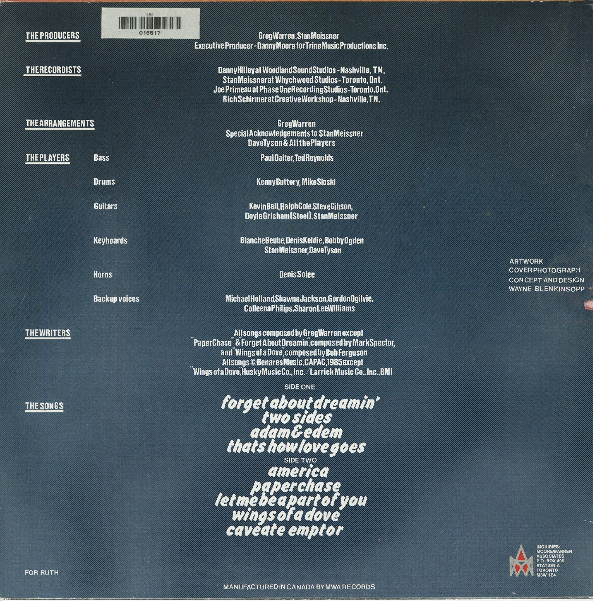 Recorded by Danny Hilley at Woodland Sound Studios, Nashville, TN, USA; Stan Meissner at Whychwood Studios, Toronto, Ontario; Joe Primeau at Phase One Recording Studios, Toronto, Ontario; and Rich Schirmer at Creative Workshop, Nasville, TN, USA