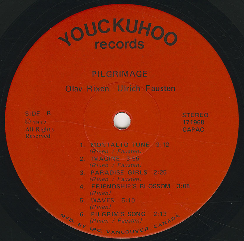 Disc mastering and manufacturing by Imperial Record Corporation, Vancouver, British Columbia