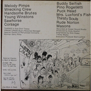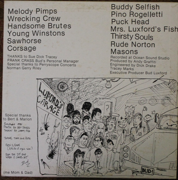 Bud Luxford bands: From 1980-81, promoter, manager and raconteur Bud Luxford began organizing revue-style showcase concerts that exclusively featured fuck bands. Eventually, the mere presence of such concerts spurred the creation of dozens more ad-hoc combos. These concerts and their audiences became a scene-within-a-scene. The light-hearted, fun-first ethic and musical variety provided a welcome change-of-pace from hardcore-style punk shows. The flagship bands of the Bud Luxford stable were Rude Norton, Buddy Selfish, and Los Radicos Popularos (later shortened to Los Popularos). Los Pops were the super-group of fuck bands, featuring Bill Shirt, Art Bergmann, John Armstrong, Zippy Pinhead and Tony Bardach. In January 1981, Luxford released the compilation LP, Bud Luxford Presents; followed a few months later by Volume 2, On Sale Inside. Raising the funds for the albums provided another excuse to stage more concerts. Other bands in the Luxford stable included the Raisinettes (featuring members of the Dishrags), Melody Pimps, Jimbo & the Lizard Kings, Sasquatch, and Mrs Luxford’s Fish. On 25 July 1981, this scene reached its apotheosis with Budstock, a 10-band showcase at the Commodore.
