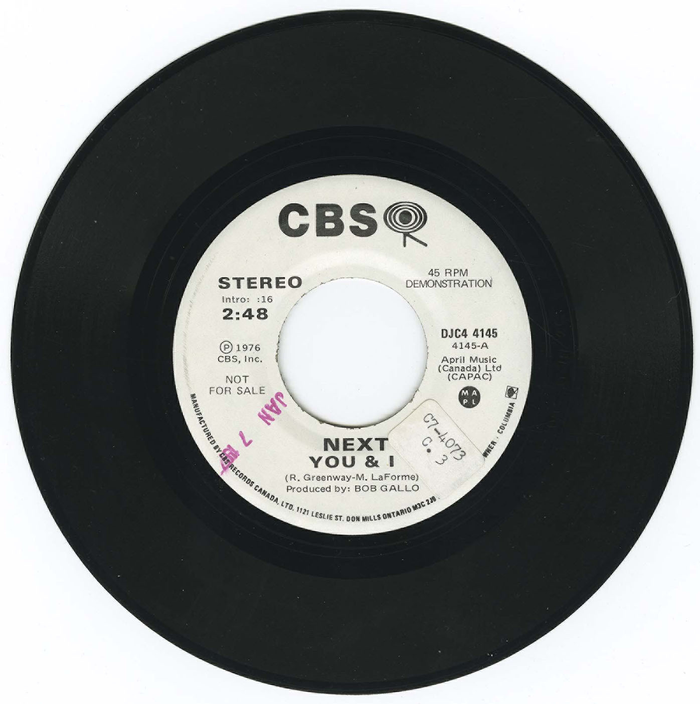 Recorded at Studio A, Eastern Sound Studios, Toronto, Ontario