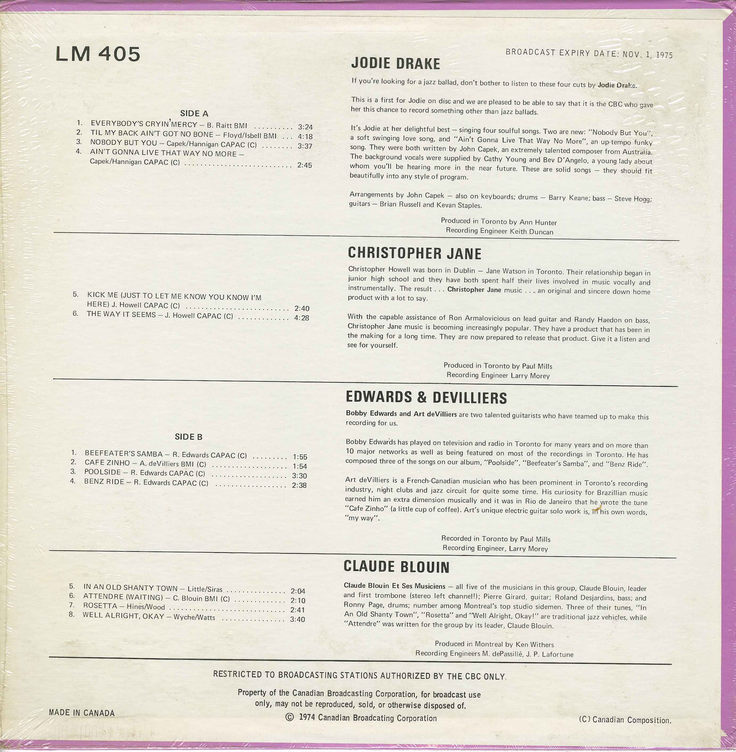His session work runs even deeper. Edwards appears alongside Ed Bickert, Hank Monis, Moe Koffman, Jerry Toth, Doug Riley, Jack Zaza, Terry Clarke, Guido Basso, and other pillars of Toronto’s studio ecosystem. Film scoring became another major thread, with Edwards contributing to a long list of Canadian productions at a time when local composers increasingly relied on seasoned studio players to anchor their cues. He also played a number of high-profile concert dates, including two command performances for Queen Elizabeth II and special orchestral tributes built around the music of Patsy Cline and Al Jolson.