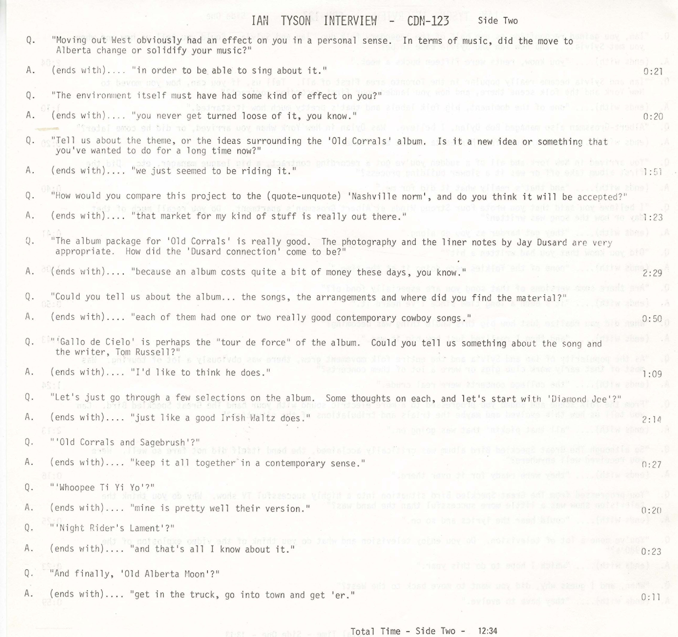 Ian Tyson - Interview INSERT CUE SHEET SIDE 02