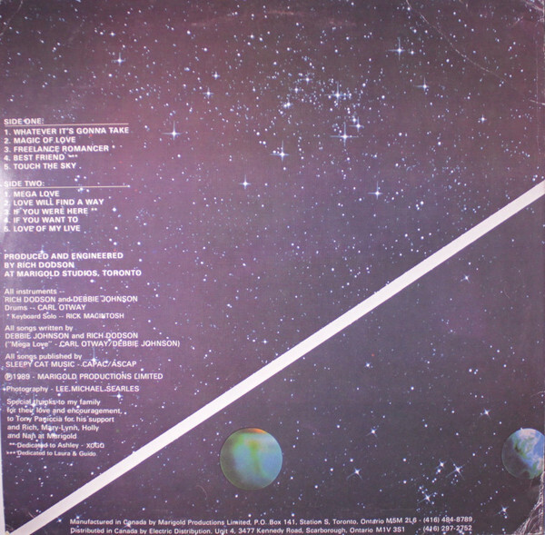 Johnson began her solo career later in the decade, signing with Rich Dodson’s Marigold label. Her 1987 single “Mama Said Why” introduced her to Canadian audiences, followed by the release of her debut album Just Like Magic in 1988. Her second album, Touch the Sky, produced by Dodson and released in 1989, spawned a series of successful singles including “Mega Love,” “Best Friend,” and “Whatever It’s Gonna Take.” “Mega Love” became a breakthrough hit, with a video that received extensive airplay on MuchMusic, CBC’s Video Hits, ITV’s Rocks, and syndicated U.S. shows such as Video Juke Box, reaching an estimated audience of over 11 million viewers. The single was co-written with Carl Otway, while much of the album was penned by Johnson herself in collaboration with Dodson. At the same time, “Best Friend” gained heavy rotation at Canadian stations like CHUM Toronto, further cementing her presence on national radio.