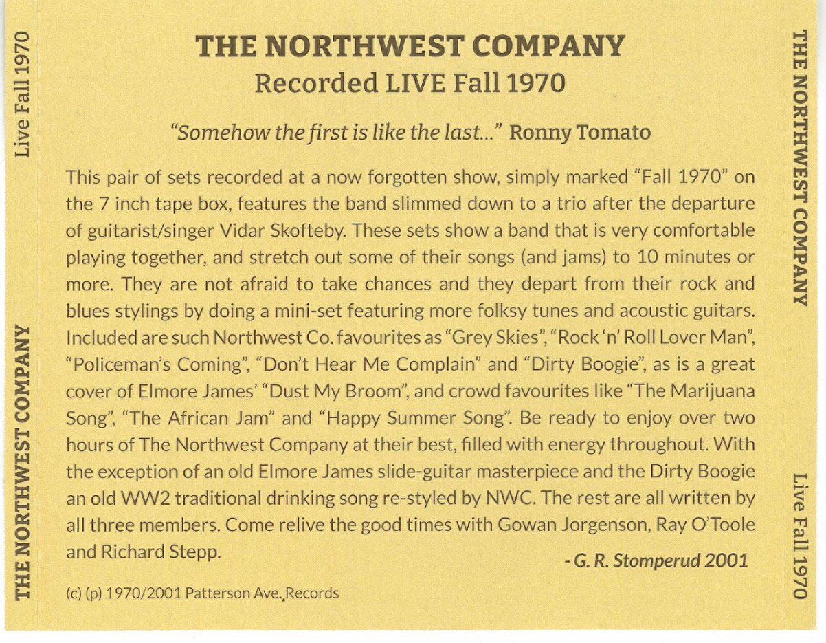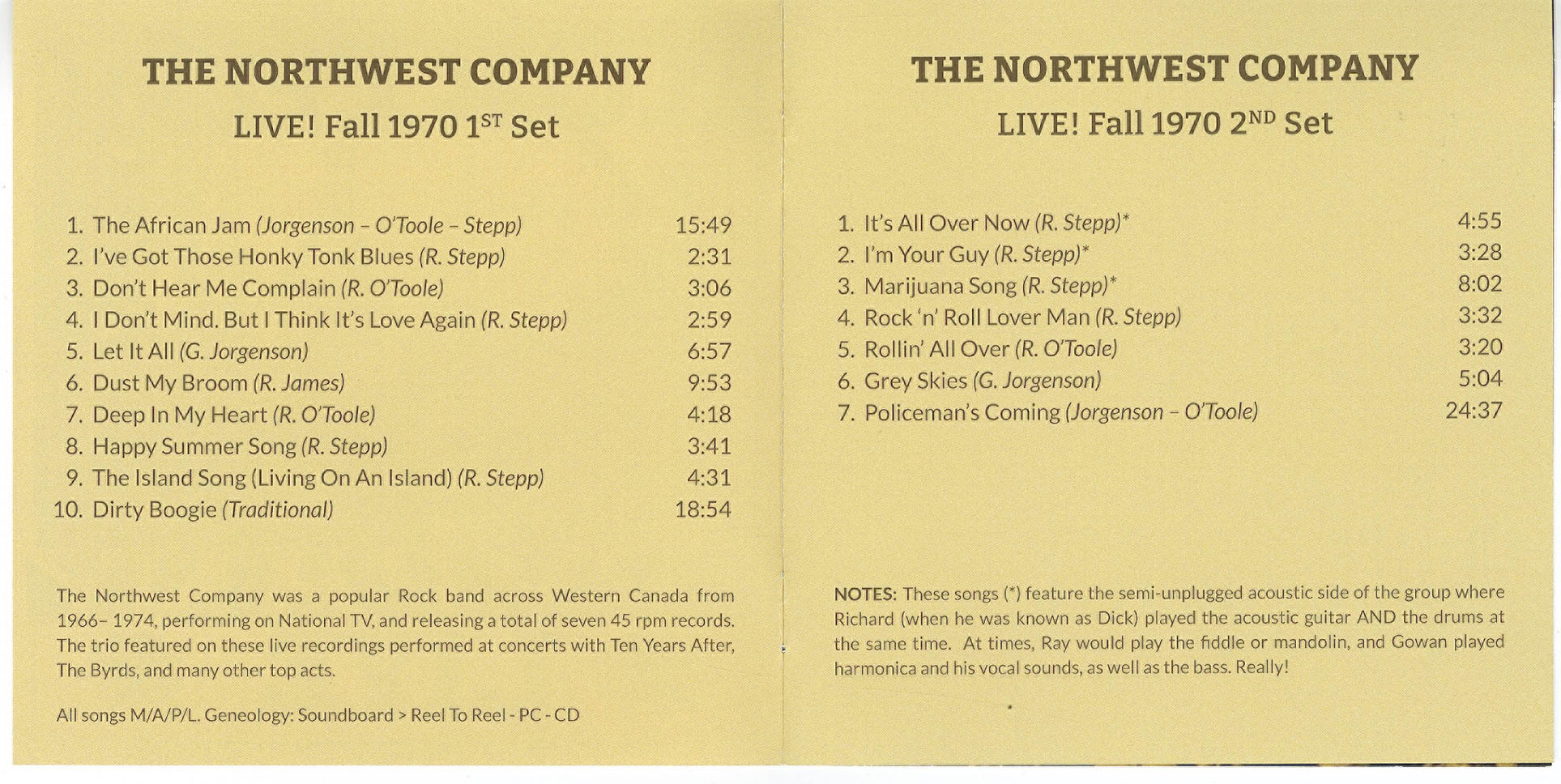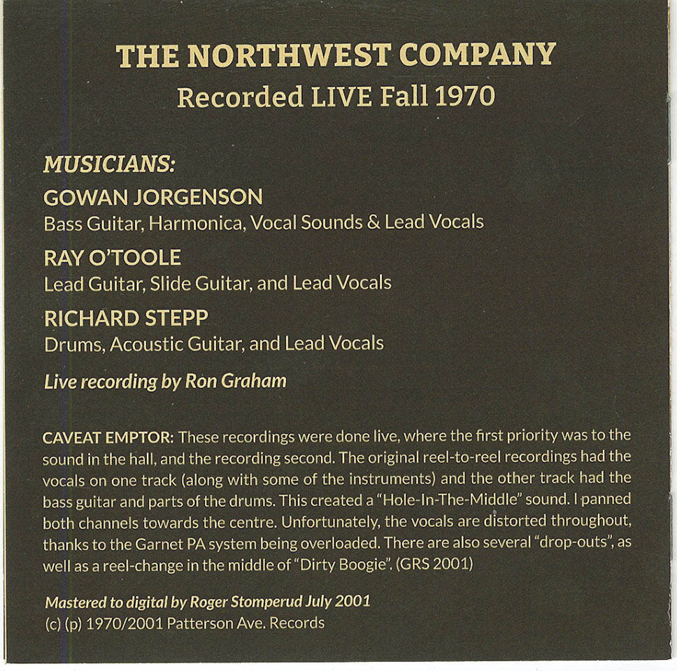 A couple of years ago I released a double cd of a live concert The Northwest Company recorded at a high school dance.