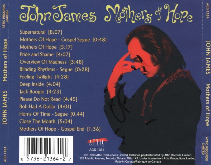 Mothers of Hope offers more substance than most in this vein. James' cool, casual party vibes are mixed with Gospel choir segues and lyrics that go far beyond hackneyed mating rituals. James has assembled a large ensemble of veteran Canadian players for Mothers of Hope, including the leading lights of such former domestic soul-pop hitmakers as Motherlode and Dr. Music. The cast smolders nicely. The title track sets the album's upbeat theme -- that each of us is responsible for passing on the good in life to generations that come. Without getting preachy, the disc works up a potent instrumental and lyrical ecstacy that is rather captivating.
