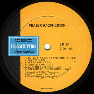 Recorded August 11th and 12th, 1970 at Studio A, CBC Vancouver, and at the North Vancouver Centennial Theatre
