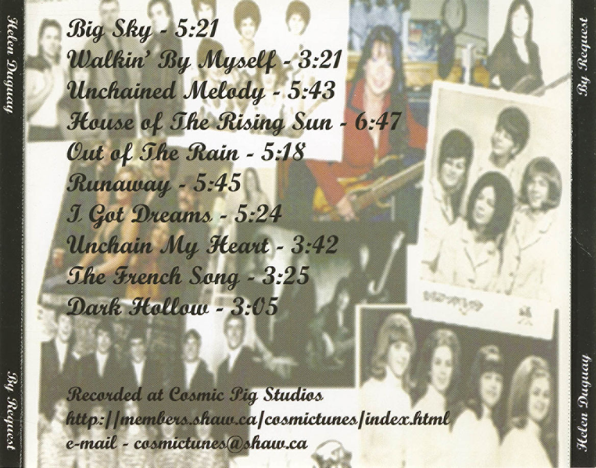 Helen Duguay presents her new CD to celebrate forty five years as an entertainer. The songs are favourites requested by her fans time and time again.