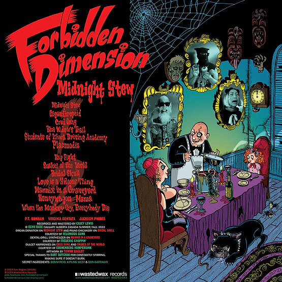 The night is just beginning and already you're feeling a tad peckish. How about some Midnight Stew - whipped up by the culinary clowns in Forbidden Dimension?!? Get the fork out! Another collection of inedible introspections from Calgary's top witchin' kitchen? Rich and meaty, big and bouncy - Midnight Stew has got what it takes to get you through the wee small ones! Save some room for this toothsome snack - assuming you've got any teeth left! What's in it? Don't ask - you really don't wanna know!!!