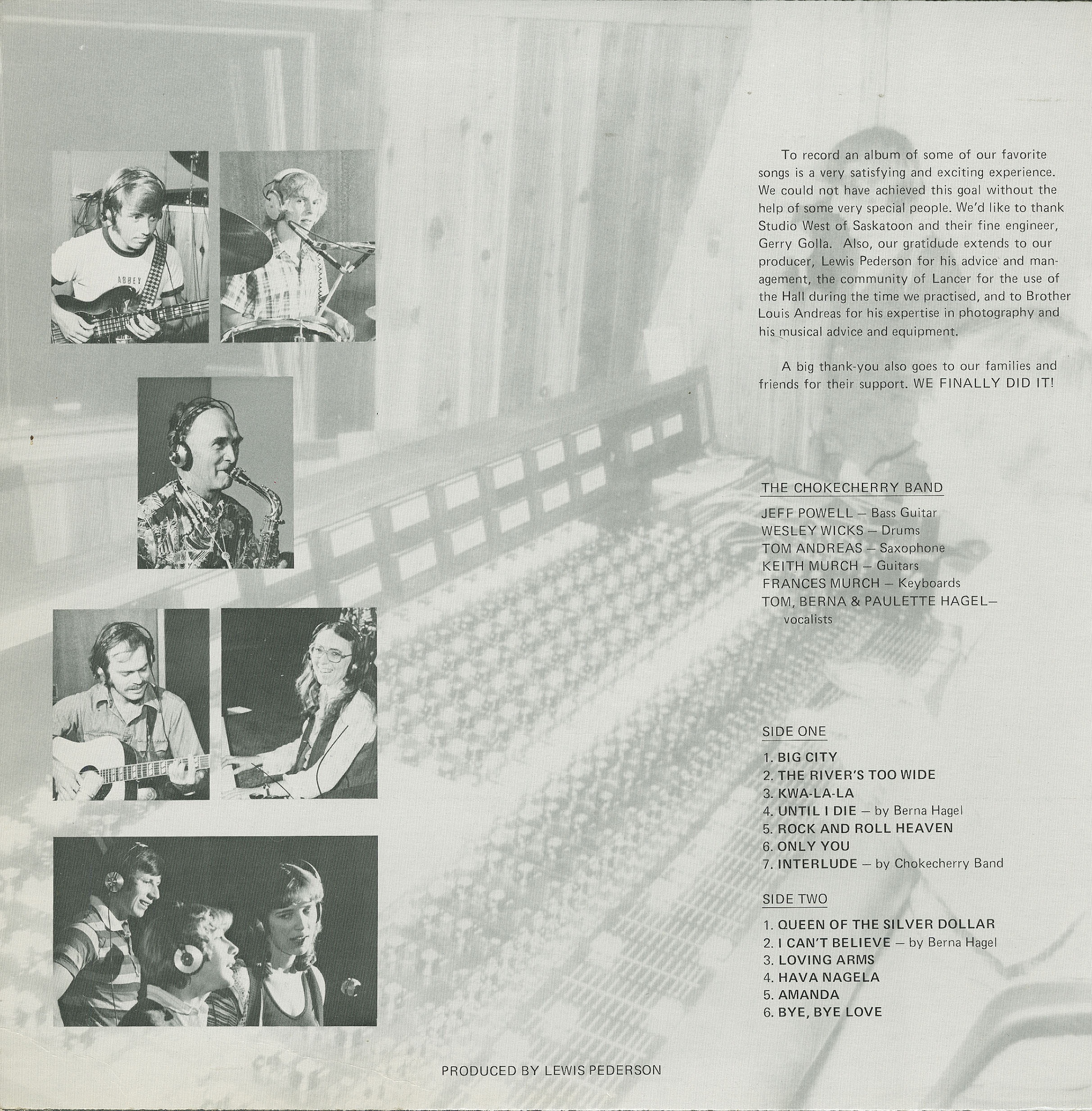 Recorded at Studio West, Saskatoon, Saskatchewan