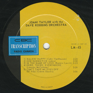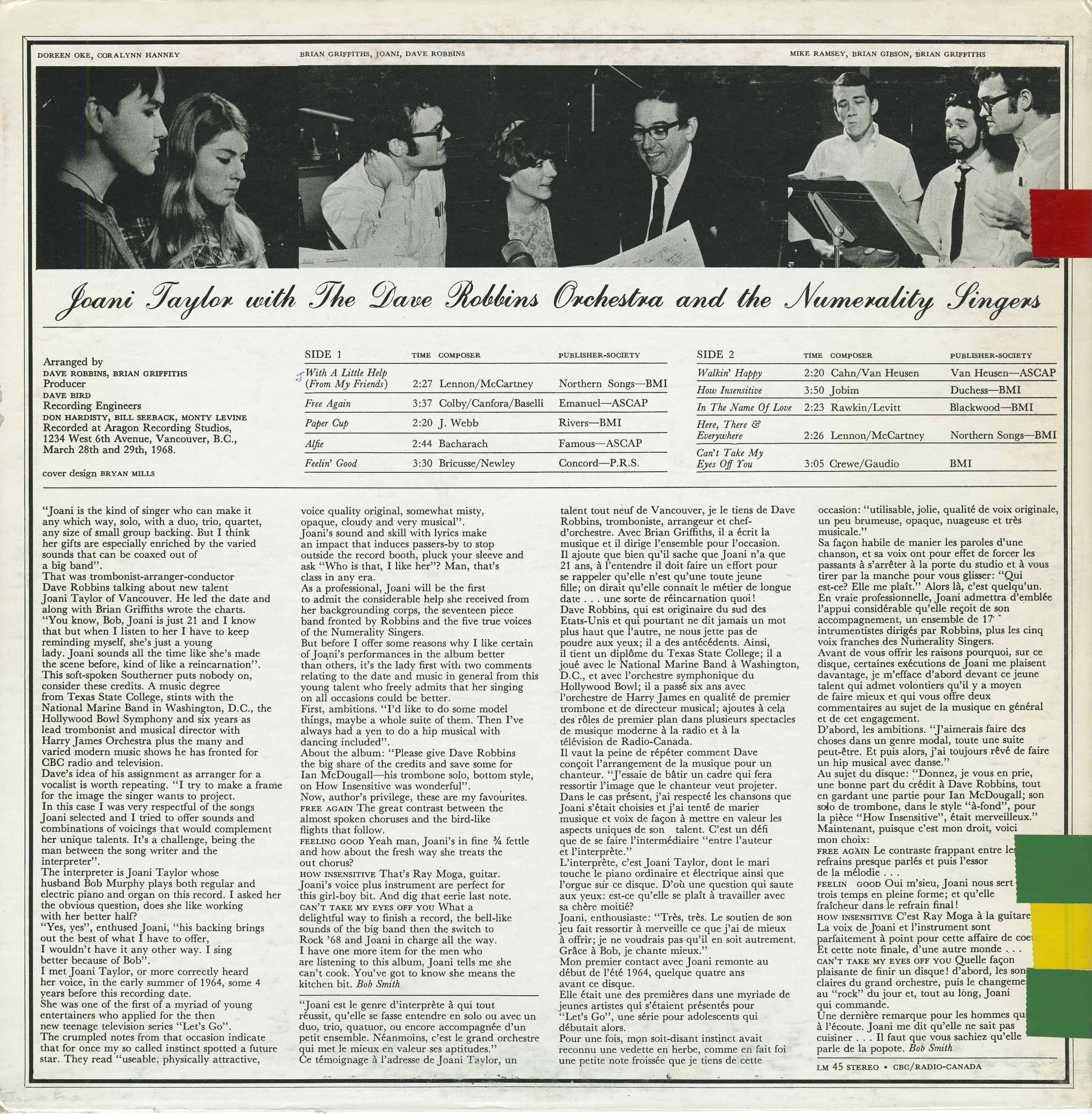 That was trombonist–arranger–conductor Dave Robbins talking about new talent Joani Taylor of Vancouver. He led the date and along with Brian Griffiths wrote the charts.