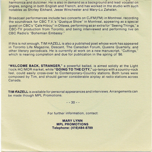 Hazell, Tim - Welcome Back, Stranger bw Going to the City (4)