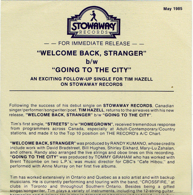 Hazell, Tim - Welcome Back, Stranger bw Going to the City (3)