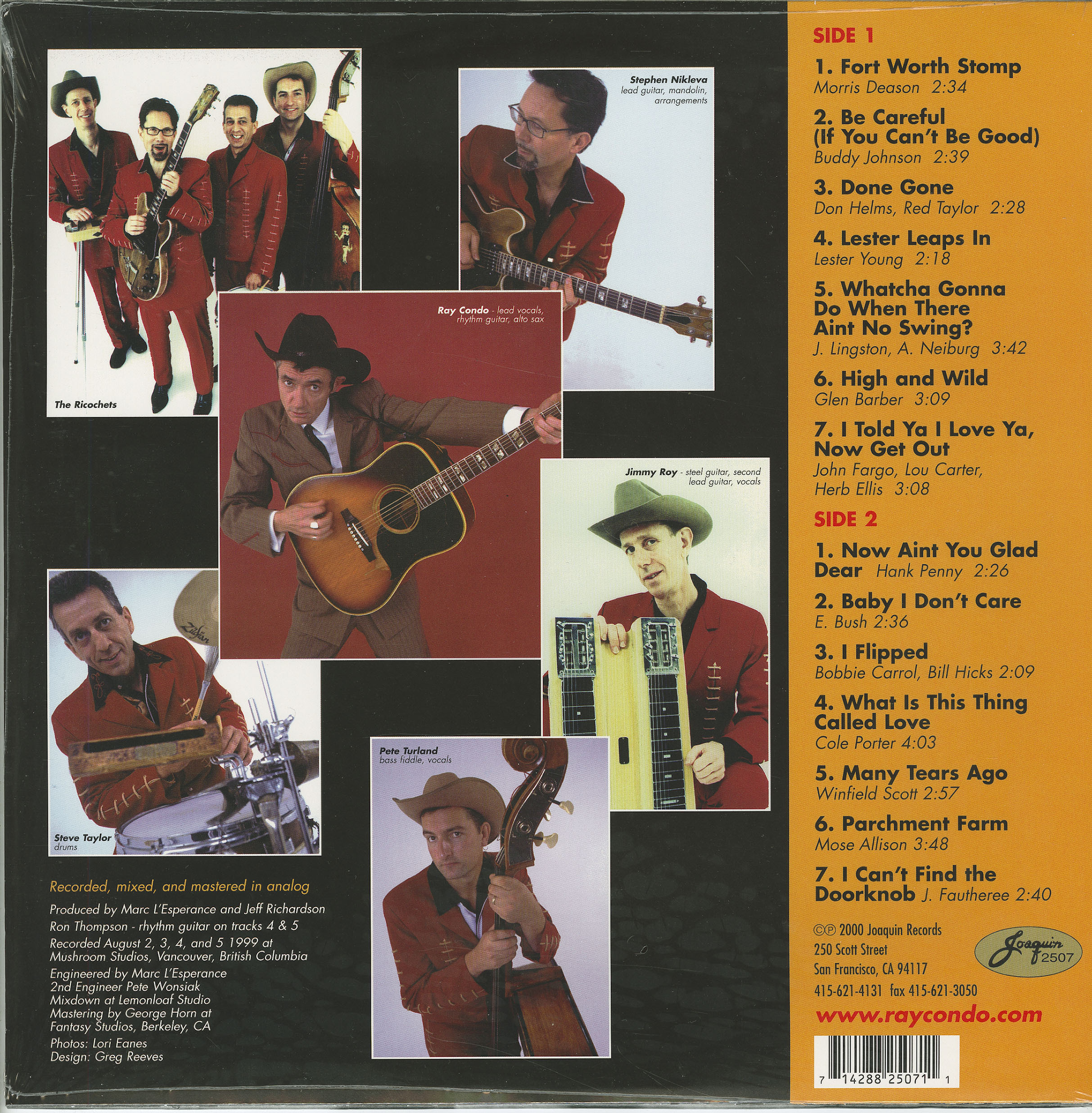Ray Condo: lead vocals, rhythm guitar, alto saxophone
