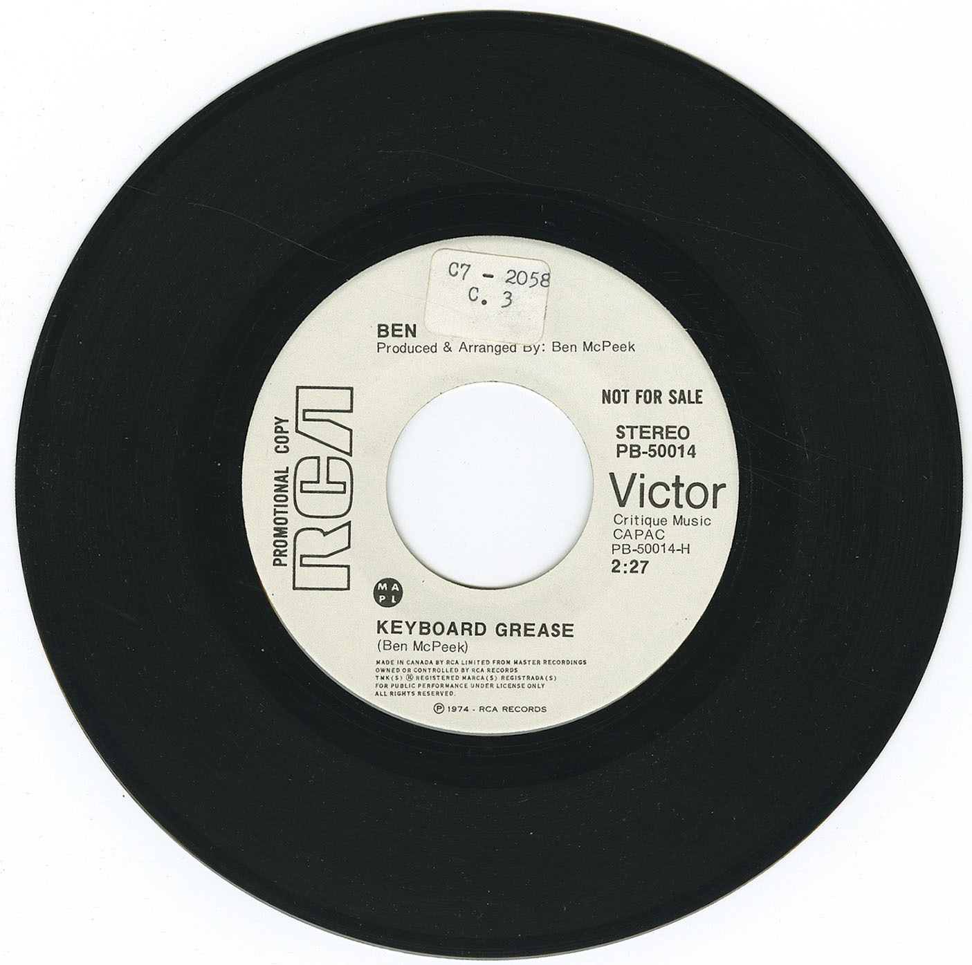 His first recorded album work came through the Canadian Talent Library. In 1966, McPeek released Colourful Configurations Conceived And Conducted By Ben McPeek (CTL M-1080), a mono LP that introduced him as a composer-arranger with a distinctive orchestral voice. The same recordings were subsequently retitled and reissued under various configurations, most notably as The Original Sounds Of Ben McPeek, His Voices And His Orchestra, appearing on Canadian Talent Library, RCA Victor, and later RCA Camden. These releases form the foundation of McPeek’s recorded catalogue and document his early orchestral and ensemble writing.