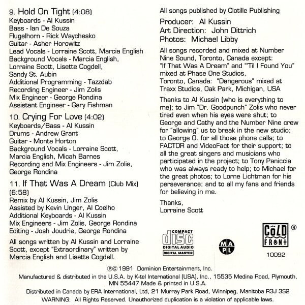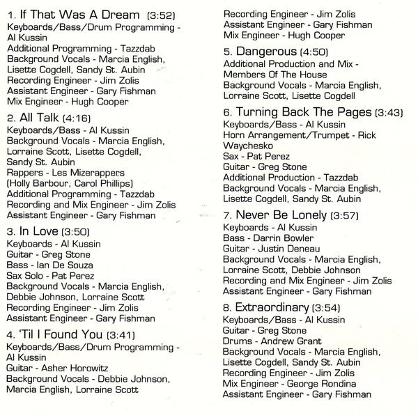 Recorded and mixed at Number Nine Sound, Toronto, Ontario, Canada except; "If That Was A Dream" and "'Til I Found You" mixed at Phase One Studios, Toronto, Canada and "Dangerous" mixed at Traxx Studios, Oak Park, Michigan, USA.