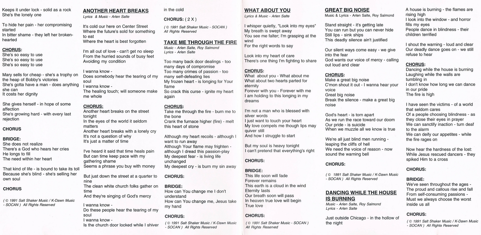 Arranged by Roy Salmond and Arlen Salte except 'She's So Easy to Use', arranged by Roy Salmond and Arlen Salte and Heart Attack