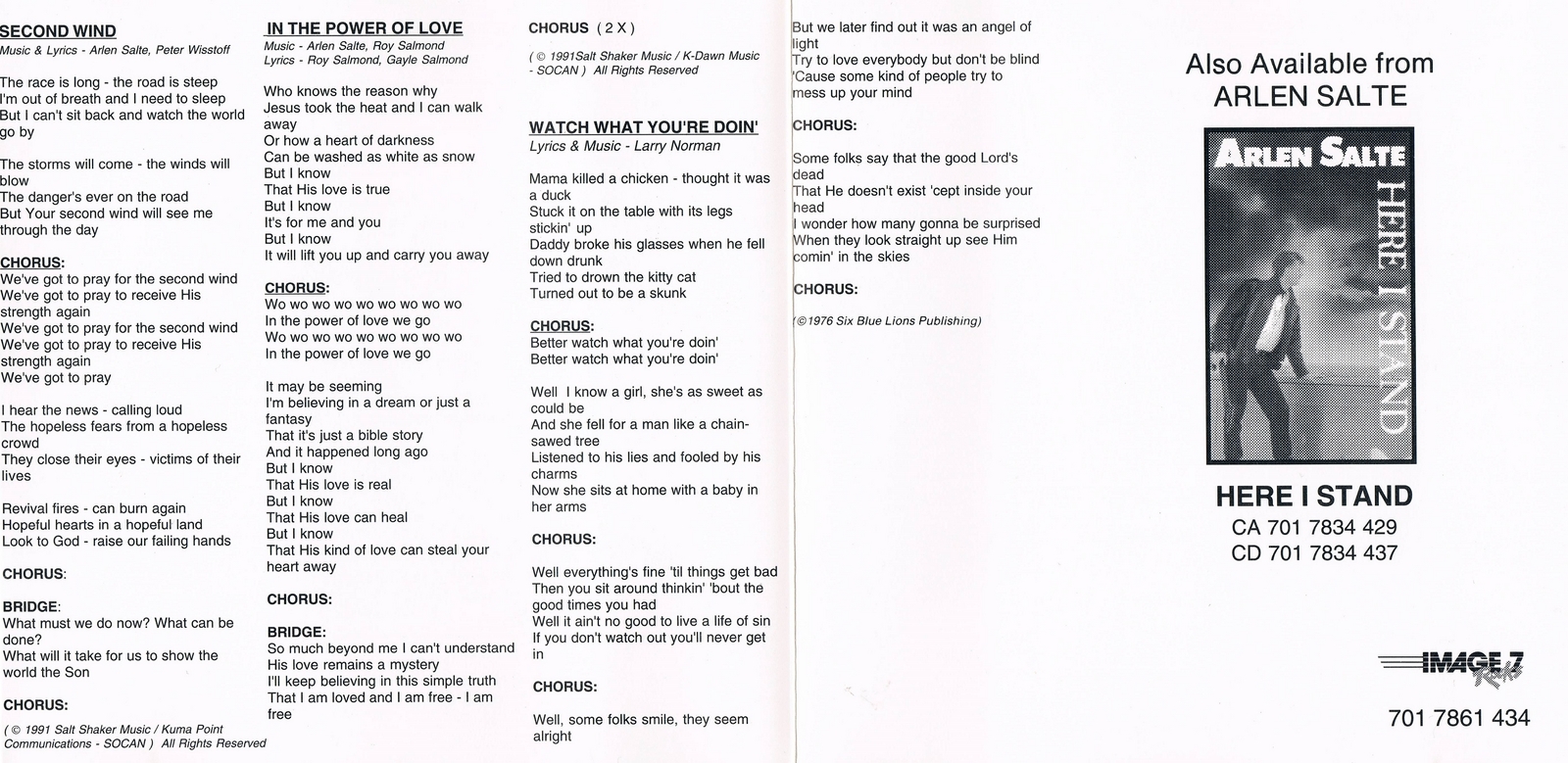Arlen Salte: lead guitar, guitar, backing vocals