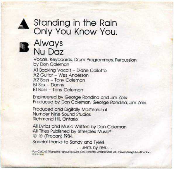 Don Coleman: vocals, keyboards, drum programming, percussion