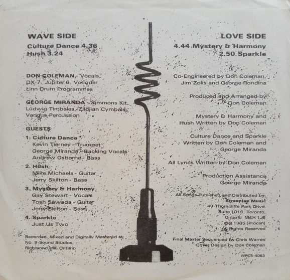 Written by Don Coleman ('Mystery' and 'Hush'); and Don Coleman and George Miranda ('Culture Dance' and 'Sparkle')