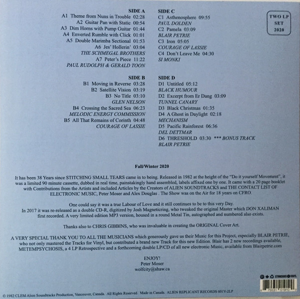 Limited edition of 200 copies. Track D6 by Blair Petrie is a bonus track that does not appear on the previous cassette and CDr issues. The first 50 of this vinyl reissue were sold as a "deluxe" set, included a LTD card certificate, sticker and original booklet.