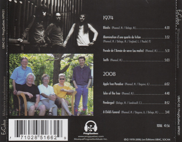 Progressive rock band founded in 1970, in Montréal, Quebec originally named 'Incubus'. Original line-up included André Deguire, Michel Phaneuf and Léo England. They changed their name to ExCubus to avoid confusion with the American rock band with the same name. Resurrected by the ProgQuébec label in the 2000's, 4 of the tracks were recorded in 1974 on the French Strawberry Studios label; all tracks were written in the 1970's. They followed up in 2011 with 'Lagauchetière', also on the ProgQuébec label, an album of material originally composed in the 1970's. While the album includes compositions dating back to the group's first lineup, it also showcases pieces written by band members during their participation in subsequent progressive bands such as Coenobium, Igor and Polygone. The album title refers to a street in South Montreal where the members of InCubus lived during the early 70's.