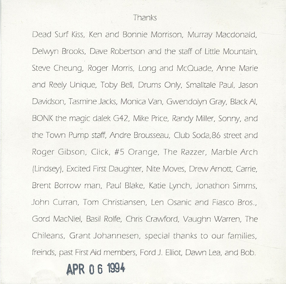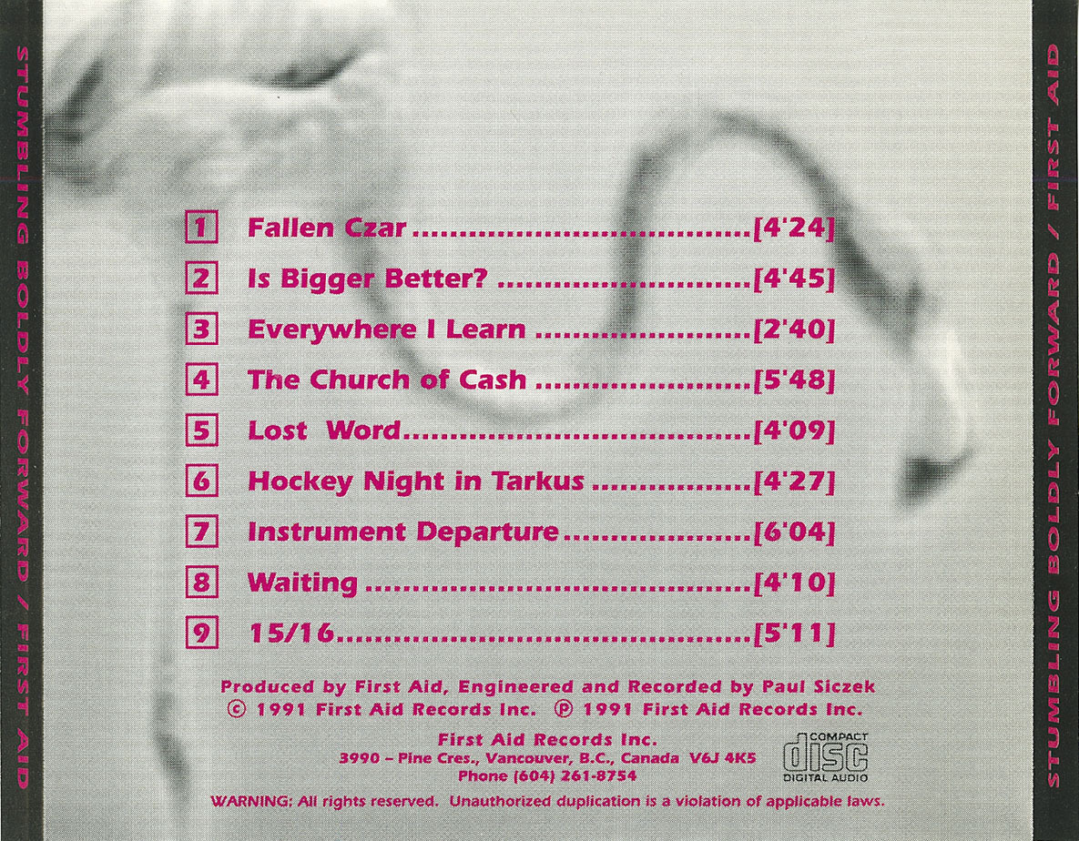 All music written, arranged, and produced by First Aid except 'Hockey Night in Tarkus' written by Emerson/Morris
