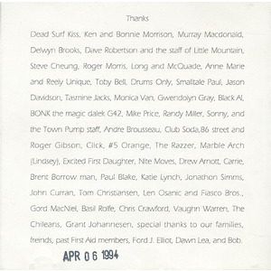 Recorded and engineered by Paul Siczek at Venture Studios, Sierra Studios, Ocean Studios, Downtown Studios, and ICA Studios
