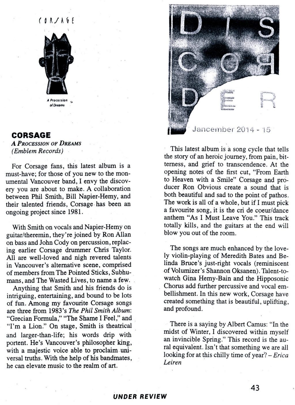 -Erica Leiren, Discorder Magazine