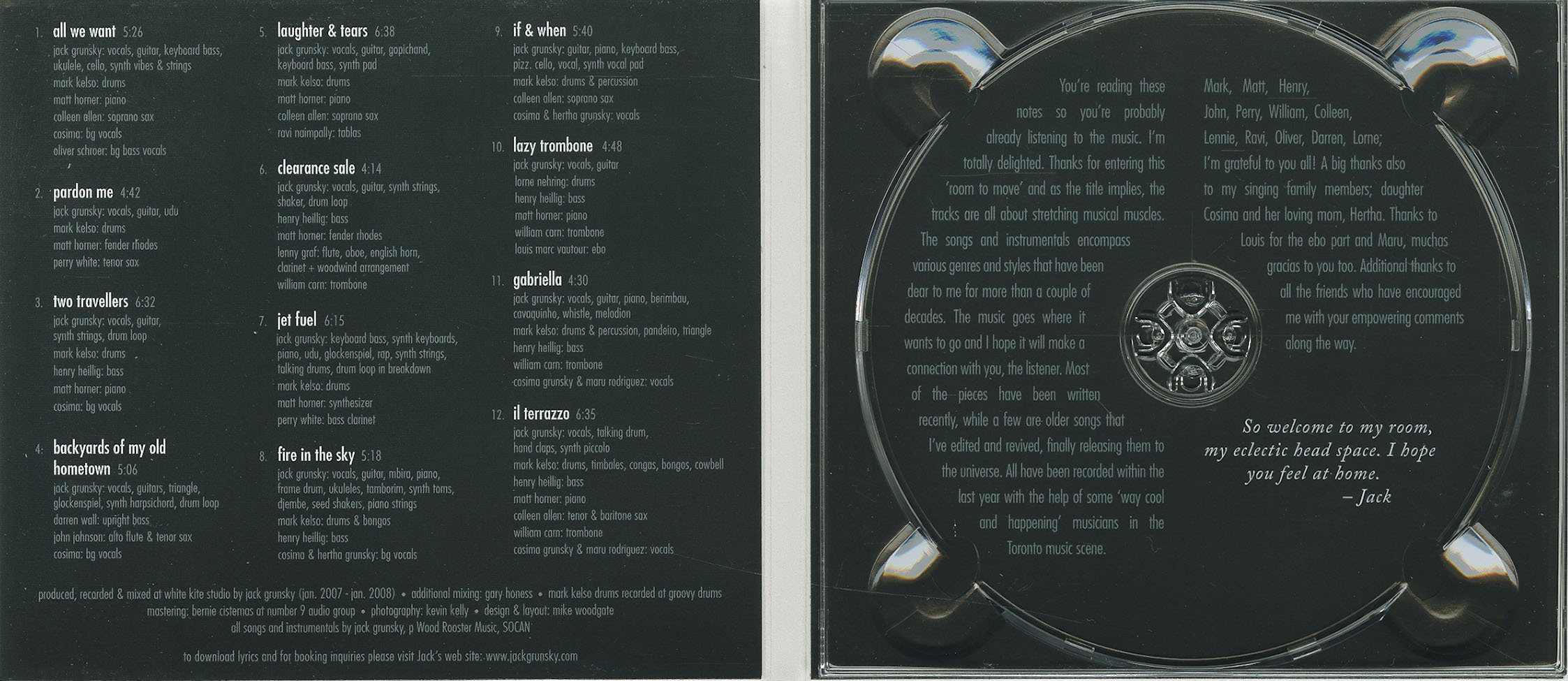 Written, Produced, recorded and mixed by Jack Grunsky, Jan 2007-Jan 2008