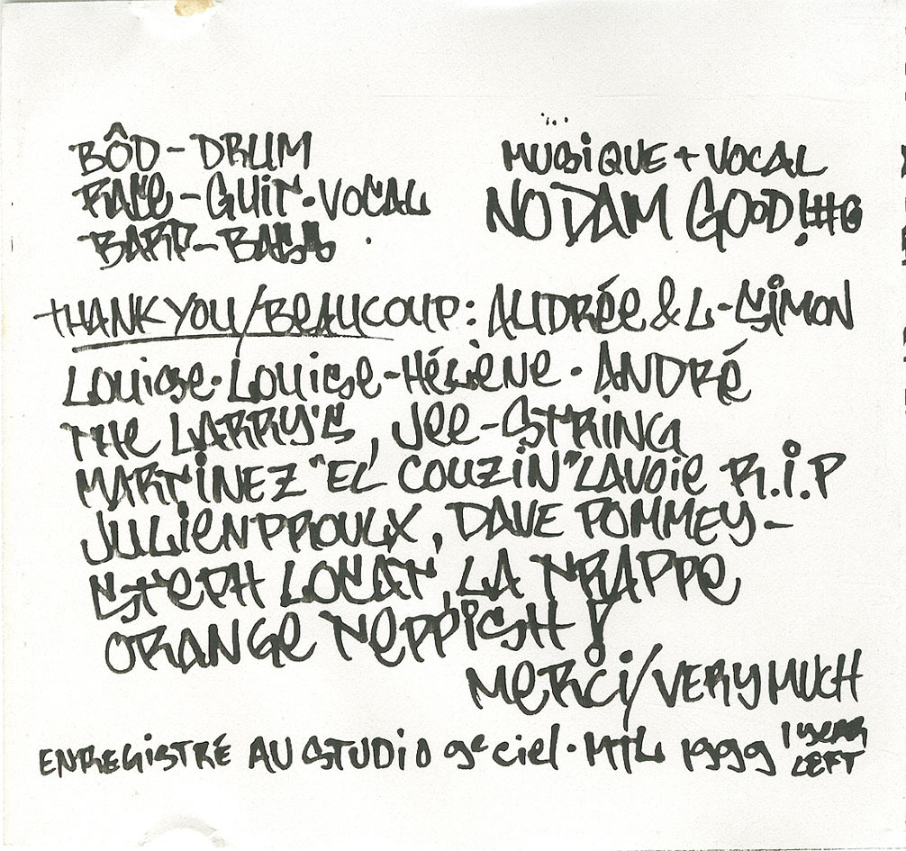 Enregistré au Studio 9e Ciel – Hiver 1999 – Zeft