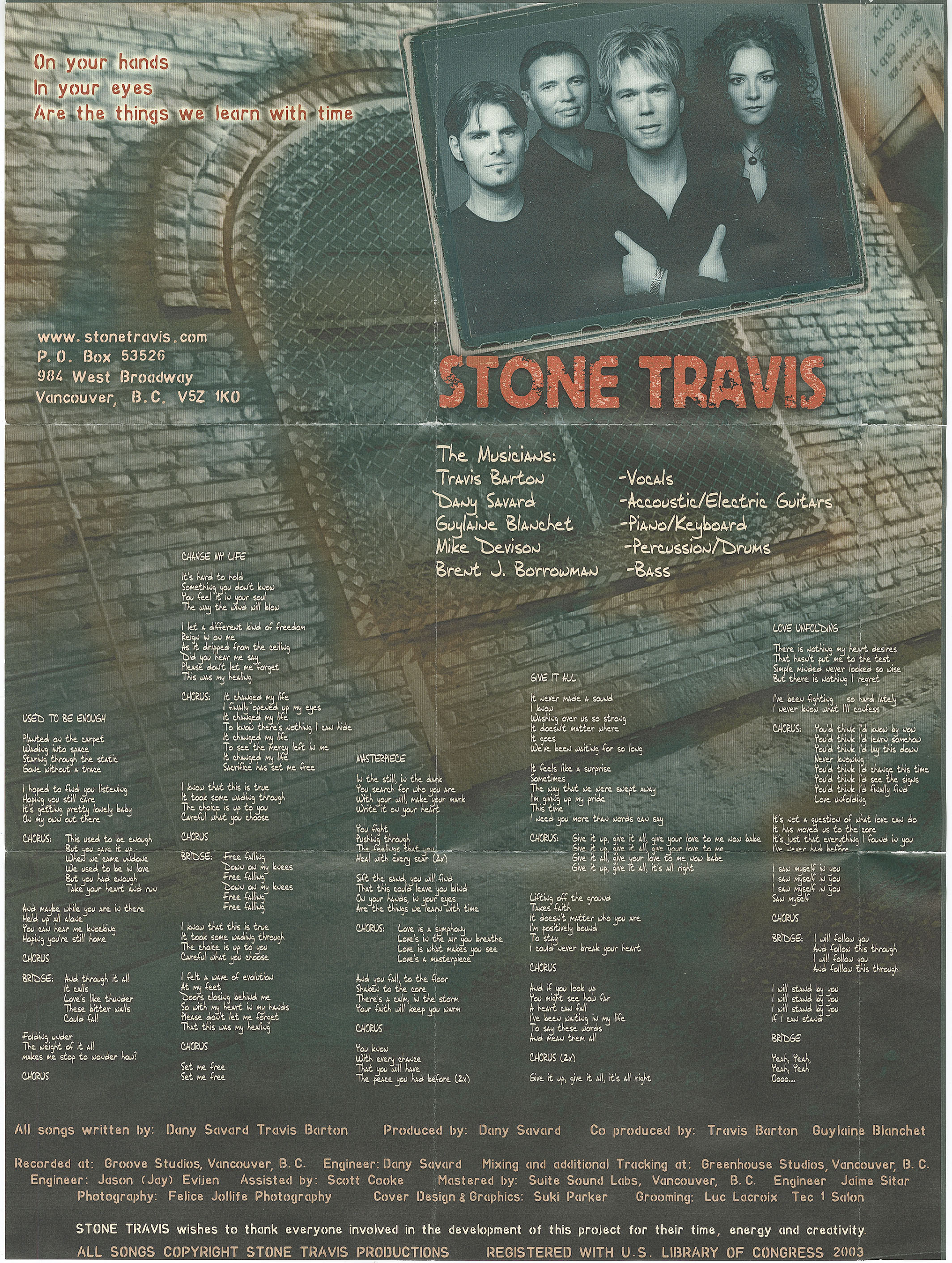Recorded at Groove Studios, Vancouver, British Columbia