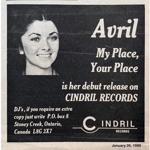 In addition to her theatrical and television success, Avril Chown left a lasting imprint on Canada’s independent music scene through her collaborations with Doug Wass’s Cindril Records in the early 1980s. She recorded two singles: