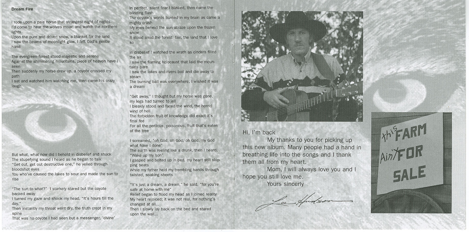 My thanks to you for picking up this new album. Many people had a hand in breathing life into the songs and I thank them all from my heart.