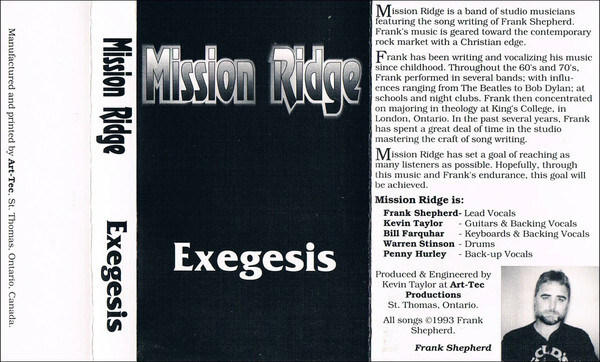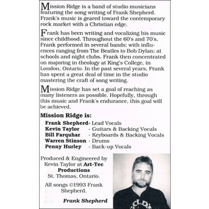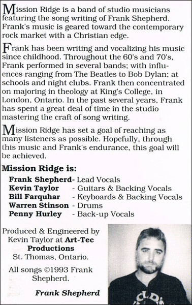 Mission Ridge is a band of studio musicians featuring the songwriting of Frank Shepherd. Frank's music is geared toward the contemporary rock market with a Christian edge.