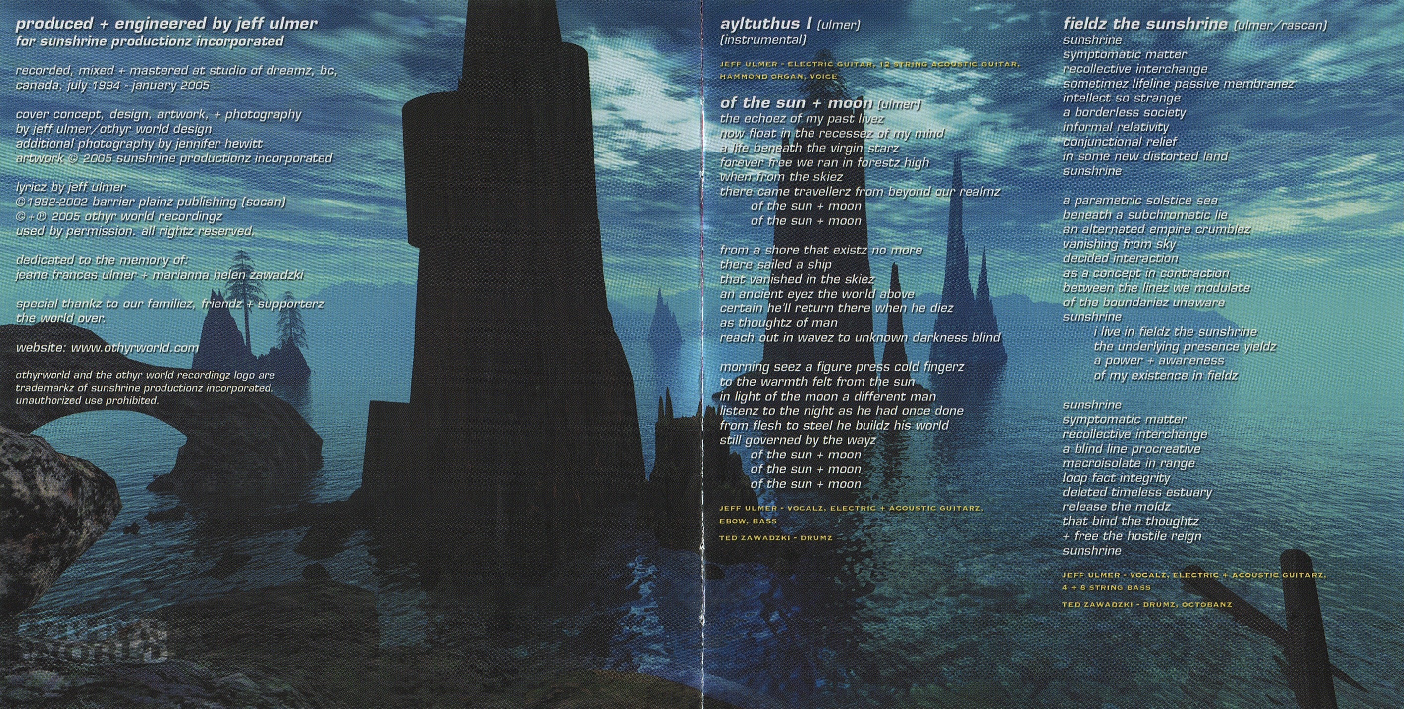 Recorded, mixed + mastered at Studio of Dreamz, Britiah Columbia, July 1994 - January 2005