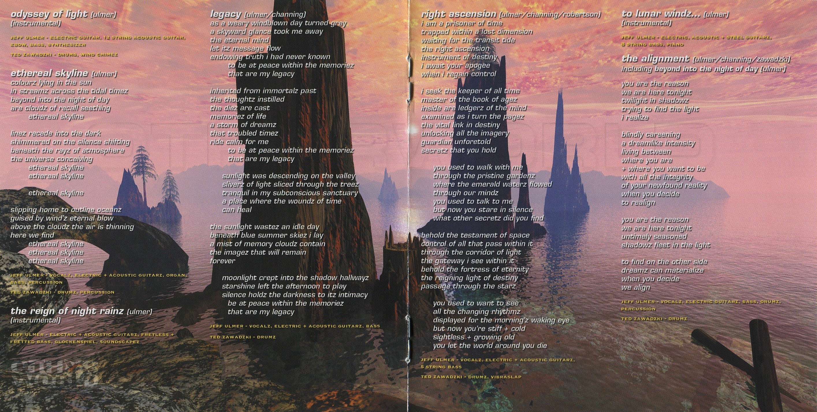 Jeff Ulmer: vocalz, electric + acoustic guitarz, Ebow, bass