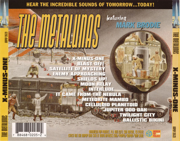Mark Brodie changes band names more than some people change their underwear. In the last three years his backing band has gone from the Beaver Patrol to the Saboteurs to the current moniker of the Metalunas. Clad in scrappy mop-top wigs specially outfitted with Martian antennae, the Metalunas keep a sci-fi theme running through their whole album. There a few vintage and faux-vintage spoken word radio play excerpts to set the mood, and the sleeve artwork is crisp and spacy. The tunes are extremely well-played classic surf with a Marketts, Dick Dale and Ventures influence that are nicely varied in tempo and instrumentation. Standout tracks include the moody “Satellite of Mystery” and the up-tempo shaker, “Shields Up!” This release is top notch in every respect and shows that Mark Brodie is one of the best instrumental surf guitarists today.