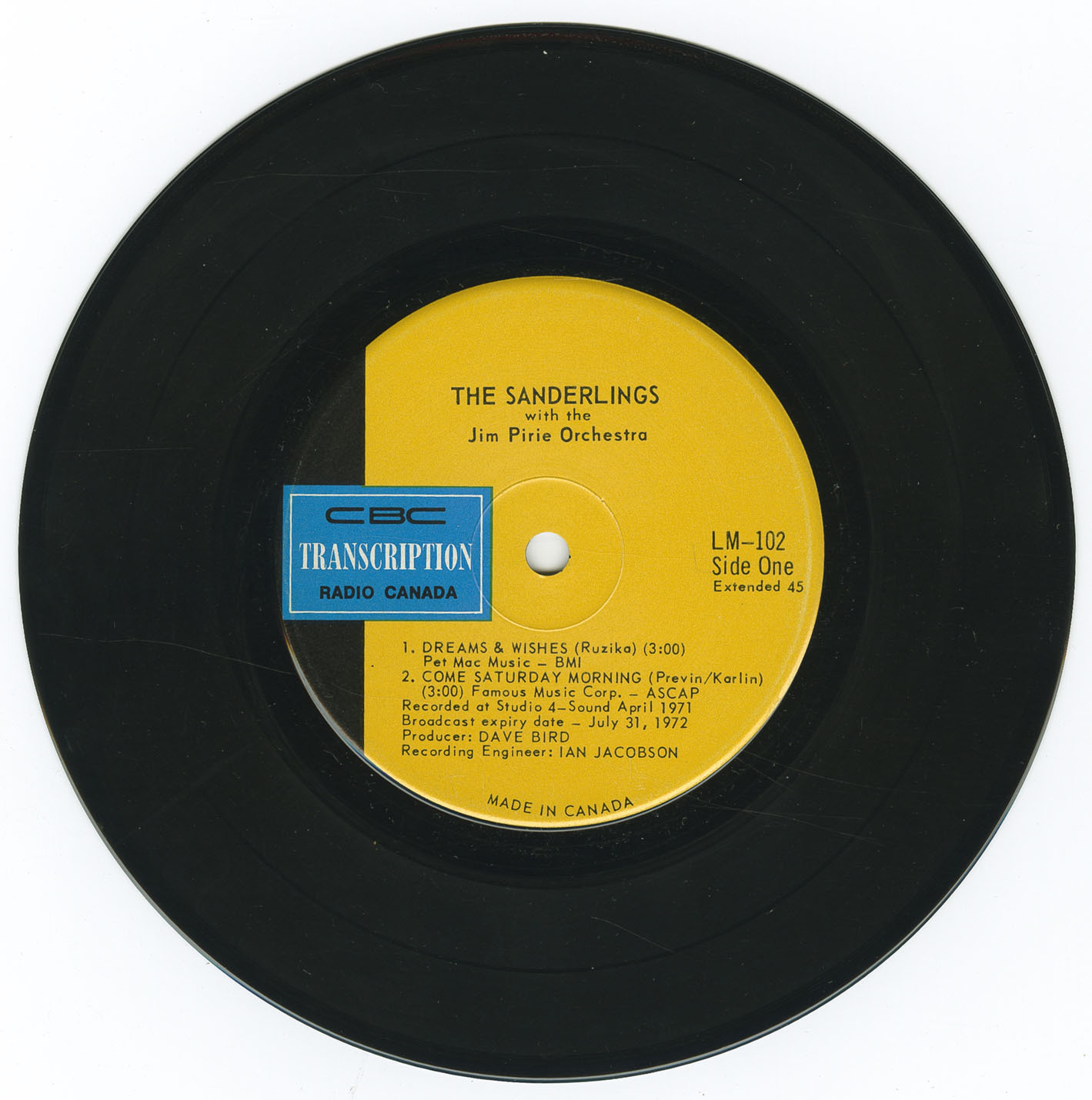 Recorded in Toronto CBC Studio 4-Sound, April, 1971