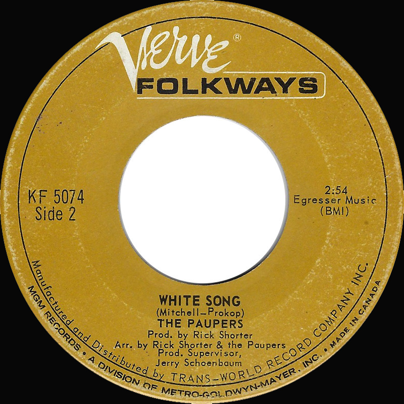Released in January 1968 on Verve Forecast, "Think I Care" b/w "White Song" was The Paupers’ final single featuring their original core lineup. By this point, the band had shifted toward a heavier, more introspective sound, moving away from the pop leanings of their earlier releases. Recorded following their extensive U.S. touring, the single reflects the growing musical ambitions and tensions within the group. Although it did not chart, it stands as an important document of The Paupers’ transition toward a darker, more progressive style prior to their eventual breakup.