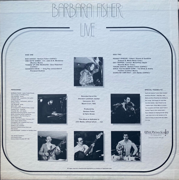 Barbara Fisher: lead vocals, Fender Rhodes electric piano (tracks A1 to A3, B1 to B5)