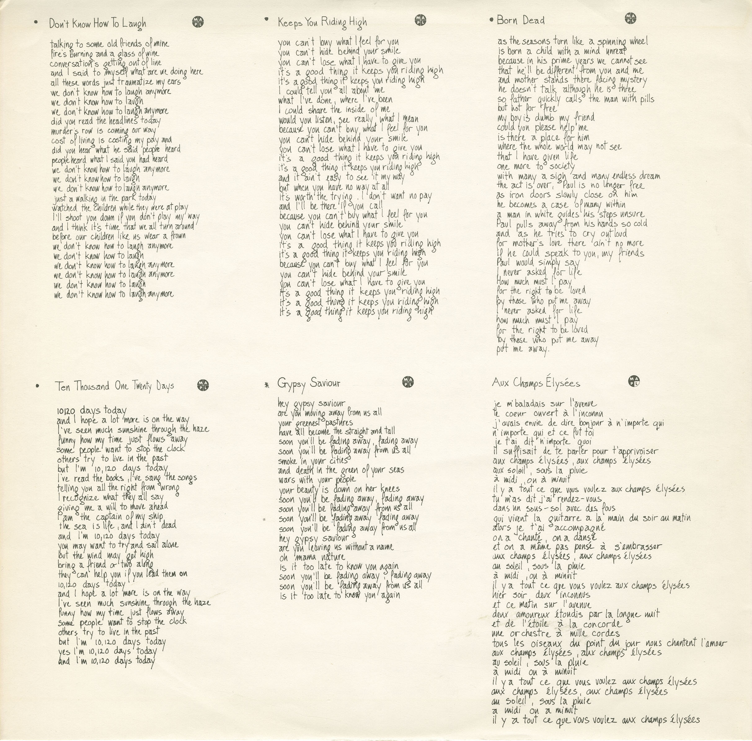 Henri Audet: vocals, guitar (tracks A1 to A3, A5, B2 to B4)