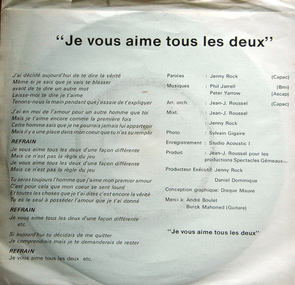 Je Vous Aime Tous Les Deux b/w Je Vous Aime Tous Les Deux - Version Instrumentale Face 2