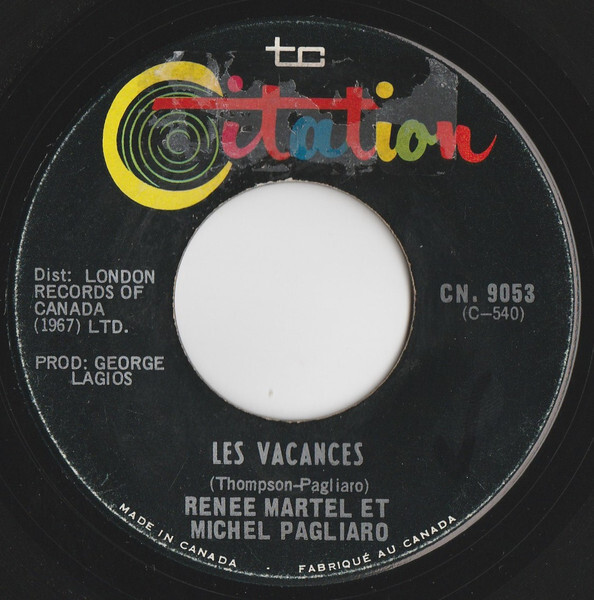 Les Vacances et Michel Pagliaro b/w Tous Les Arbres Sont En Fleurs et Michel Pagliaro