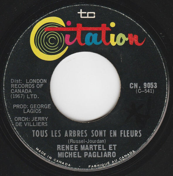 Les Vacances et Michel Pagliaro b/w Tous Les Arbres Sont En Fleurs