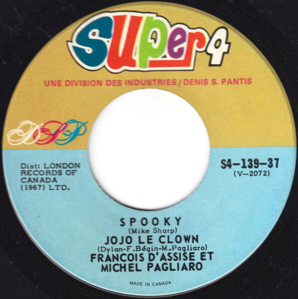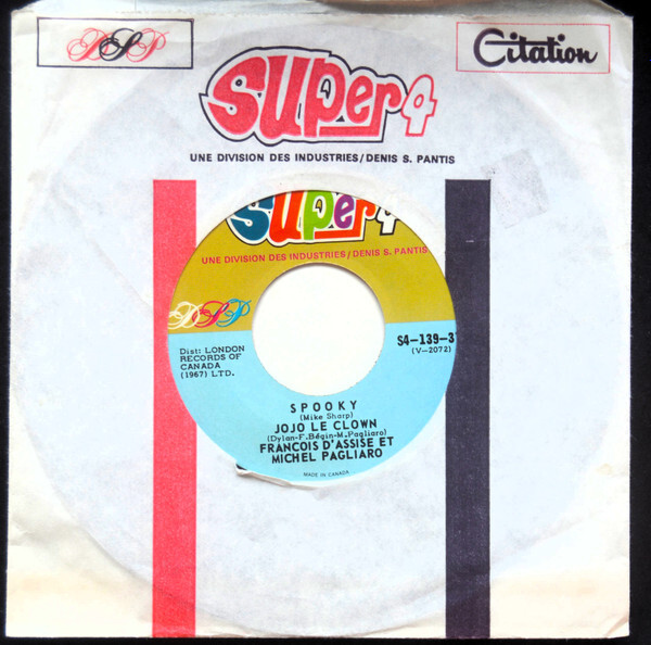 Michel Pagliaro / Renee Martel / Francois D'Assise: Spooky / Jojo Le Clown b/w Les Vacances / Tous Les Arbres Sont En Fleurs