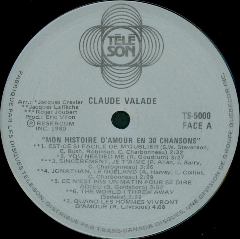 Mon histoire d'amour en 30 chansons Disc 1 Face A